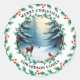 Merry Christmas deer and robin bird family name Classic Round Sticker