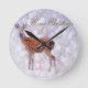 Merry Christmas Deer Friends in Snow Round Clock