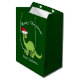Cute holiday animals are my favorite part of Christmas. A cool green dinosaur wearing a red Santa hat and looking happy. This personalized kids gift bag fills me with the Christmas spirit.