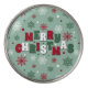 Merry Christmas colorful text design with snowflakes decoration on green background