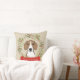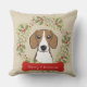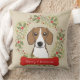 Merry Christmas Throw Pillow featuring your favorite breed, a holly wreath and red bone on a khaki background. Matching ornaments available.