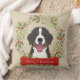Merry Christmas Throw Pillow featuring your favorite breed, a holly wreath and red bone on a khaki background. Matching ornaments available.