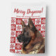 Cute German Shepherd dog festive Christmas house flag for the dog lover. Merry Dogmas! Personalize the family name or add your own message.