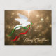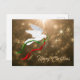 Personalize this "One of a Kind" Christmas Postcard! A Serene White Dove Flying Among the Stars Carrying Holly and Flowing Red & Green Ribbons!