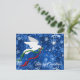 Personalize this "One of a Kind" Christmas Postcard! It Features a Serene White Dove Flying Among the Stars and Snowflakes Carrying Holly with Flowing Red and Green Ribbons!