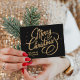 Merry Christmas Elegant Black & Gold Script Holiday Postcard