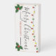 Festive wood box sign with Merry Christmas typography and personalized with family name.