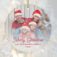 Spread holiday cheer to friends and family with this modern keepsake ornament. The red text reads "Merry Christmas" in stylish retro handwriting script. Replace the sample image with your favorite photo, and add your family name and the year. A white gradient filter helps make the text pop.