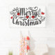A festive and elegant calligraphy style swashy font reads "Merry Christmas" and has the outline of small red and white hearts and leaves around it which are framed by flourish swirls and dots. This festive greeting is ideal for your house or office to greet friends; family and guests.