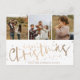 Merry Christmas Faux Gold 3 Photo Christmas Postcard
