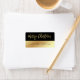 These stylish address labels say "Merry Christmas" in modern faux gold text, with your address information below, on a black and faux gold background.