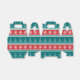 Merry Christmas illustration with Christmas tree and snowflakes decoration on red, white, blue and turquoise striped background