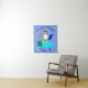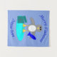 This awesome tapestry features a cute little gray and white penguin with beady black eyes and yellow beak and feet. The penguin is holding a big blue fish with one flipper and standing on a pale blue lump of ice. There is an open present next to the penguin complete with a festive ribbon.