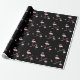 Wrapping Paper with a pattern of flamingos in a buffalo plaid (pink white) pattern on a black background. The wrapping paper includes the words "Merry Flamingo Christmas" and those words can be customized.