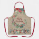 Christmas traditional style floral apron with red burgundy and pine green botanical borders and wreath with seasonal foliage and a cardinal bird on a rustic country beige faux burlap cloth background. +++++++++ You can personalize it with your text.