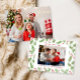Merry Christmas Floral Greenery Two Photo Holiday Card