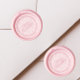 Before the wax hardens, gently and evenly press the wax seal stamp into the melted wax, ensuring it's centered.