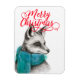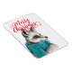 Black and white pencil sketch of fox with aqua colored scarf and "Merry Christmas" red text overlay give this a modern feel.