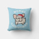 Merry Christmas from Cream Santa Frenchie - Blue Throw Pillow