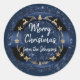 Merry Christmas From Name Blue Navy Gold Wreath Classic Round Sticker