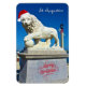 Merry Christmas from St. Augustine! Share a little sunshine with this unique Florida-themed holiday Magnet that features the photo image of one of two gallant white marble lions that stand guard over the entrance to the Bridge of Lions which connects downtown "Old City" Saint Augustine with Anastasia Island. The large Carrera marble lions are named “Firm” and “Faithful,” and were originally commissioned by Italian sculptor F. Romanelli in 1927, and later restored. The background features a stunning azure blue sky and sailboats anchored in Matanzas Bay, which is part of the Intracoastal Waterway. The "St. Augustine" text may be deleted or edited for personalization at no additional cost. Coordinating greeting cards, ornaments, pillows, and more available in this festive design. Photography by Glenda Motsavage, a Florida-based travel writer and author.