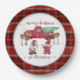Merry Christmas Gnome Red Plaid Watercolor Truck Paper Plates