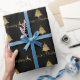 A Shining Christmas Wrapping paper with a lovely typography text "Merry Christmas" in faux gold with a Christmas Tree and a reindeer on a black background. Beautiful and elegant designs to make a joyful gift wrapping this holiday season.
