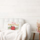 This decorative holiday pillow features beautiful poinsettia surrounded by leaf branches, gold glitter confetti and text image "Merry Christmas" on a white background. Back features falling gold confetti on a red background. Easy to personalize with custom options. Use the customize button to change the background color or add text. Perfect holiday decor for your home or makes a great gift.