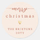 Merry Christmas & Gold Heart Cream Holiday Round Stickers! These minimalist stickers feature a "merry christmas" greeting at the top of the card, with "merry" written in elegant script calligraphy, adorned with simple flourishes at either end. Below, there is a cute gold heart. With your family name and the year displayed below, these stickers add a personal touch to your holiday gifts and decorations. Ideal for sealing envelopes, decorating gift boxes, or embellishing festive items! Made to match our Merry Little Moments 9 Photo Collage Christmas Holiday Collection, coordinating items are available through the collection link on this page. Feel free to message me with any design-related questions, I'll be happy to help! Just note I cannot modify an existing order. Visit our store for more fun Christmas designs!