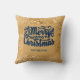 Merry Christmas Gold Navy Blue Brush Script Name Throw Pillow