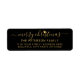 Elegant, Modern Calligraphy Merry Christmas Family Return Address Labels in Black and Gold. Featuring a pretty hand lettered script with saying "merry christmas" in swash-tail font and a little heart motif. Great for Christmas holiday season, easy to personalize them with your names and return address info.