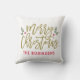 Merry Christmas Gold Script Family Name White Throw Pillow