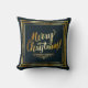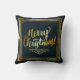 Elegant Merry Christmas in two-tone golden yellow colored script font with a golden accent flourish set in gold yellow colored geometric frames. Set on solid black pearl deep blue