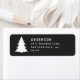 Merriest Christmas graphic typography holiday address label design. With modern hand drawn text and tree