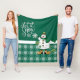 Merry Christmas Green Snowman Fleece Blanket