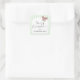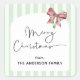 This square Christmas sticker features a joyful red and green ribbon bow with a soft, light green striped border. Personalize with your family name.