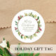 This design features a merry Christmas script typography classic sticker with green and red, holly perfect for gift tags, with greenery foliage, and red holly berries