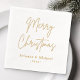 Winter holiday real foil napkins with the text "Merry Christmas" in a handwritten style script with your name or other custom text below.
