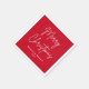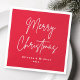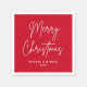 Winter holiday napkins with the text "Merry Christmas" in a handwritten style script with your name or other custom text below. White text on red background.