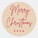 Merry Christmas handwritten script red Kraft look Classic Round Sticker