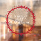 Merry Christmas handwritten text and floral wreath modern window cling displaying the text “Merry Christmas” in handwritten style.