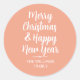 A modern, burnt orange Merry Christmas Happy New Year sticker or envelope seal with white elegant script calligraphy and simple stylish typography on a pumpkin pink background. Exclusively designed for you by Happy Dolphin Studio!