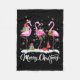 Merry Christmas Hat Santa Flamingo Light Christmas Fleece Blanket