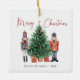 This cute and unique holiday nutcracker Merry Christmas photo ornament features hand-painted watercolor nutcracker toy soldiers around a beautiful tree and text for adding your family name and year. The back includes a photo for personalizing. Find matching items in the Christmas Holiday Nutcracker Collection.