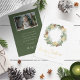 This winter Merry Christmas card features hand-painted watercolor greenery and real gold foil pinecones arranged as a beautiful wreath. The text is brown and the background is white. The back includes a family photo and text for personalizing. Find matching items in the Pinecone and Greenery Christmas Holiday collection.