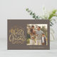 Merry Christmas Holiday Gold Brown Name Script Card