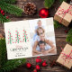 Celebrate the Christmas holiday with this fun, customizable postcard. The cream colored background is accented with a green pretty Christmas trees with red jet fighter ornaments and customizable text at the bottom to add your family name. To the right, add your favorite family photo, creating a perfect balance of festive. Flip over the card to enter personalized name, address, and special holiday greeting, or use ours!