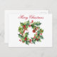 Merry Christmas Holly Berry Wreath Holiday Postcard