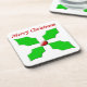 This awesome cork coaster features four holly leaves complete with a red berry to join them together. The berry appears to glisten in the light and the leaves have a 3D quality to them. There is customizable red text at the top allowing you to personalize this coaster for yourself or turn it into a lovely gift for someone else.