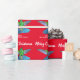Fun Christmas wrapping paper featuring a photograph of a tropical green-crowned brilliant hummingbird from Costa Rica with wide open wings showing the glory of his shiny blue and green feathers, set against a holiday red background. You can personalized the greeting above him ("Merry Christmas," "Joy to the World," etc.) and two lines of text underneath in modern white typography. Great for birders, nature and garden lovers. Photo taken in Costa Rica.